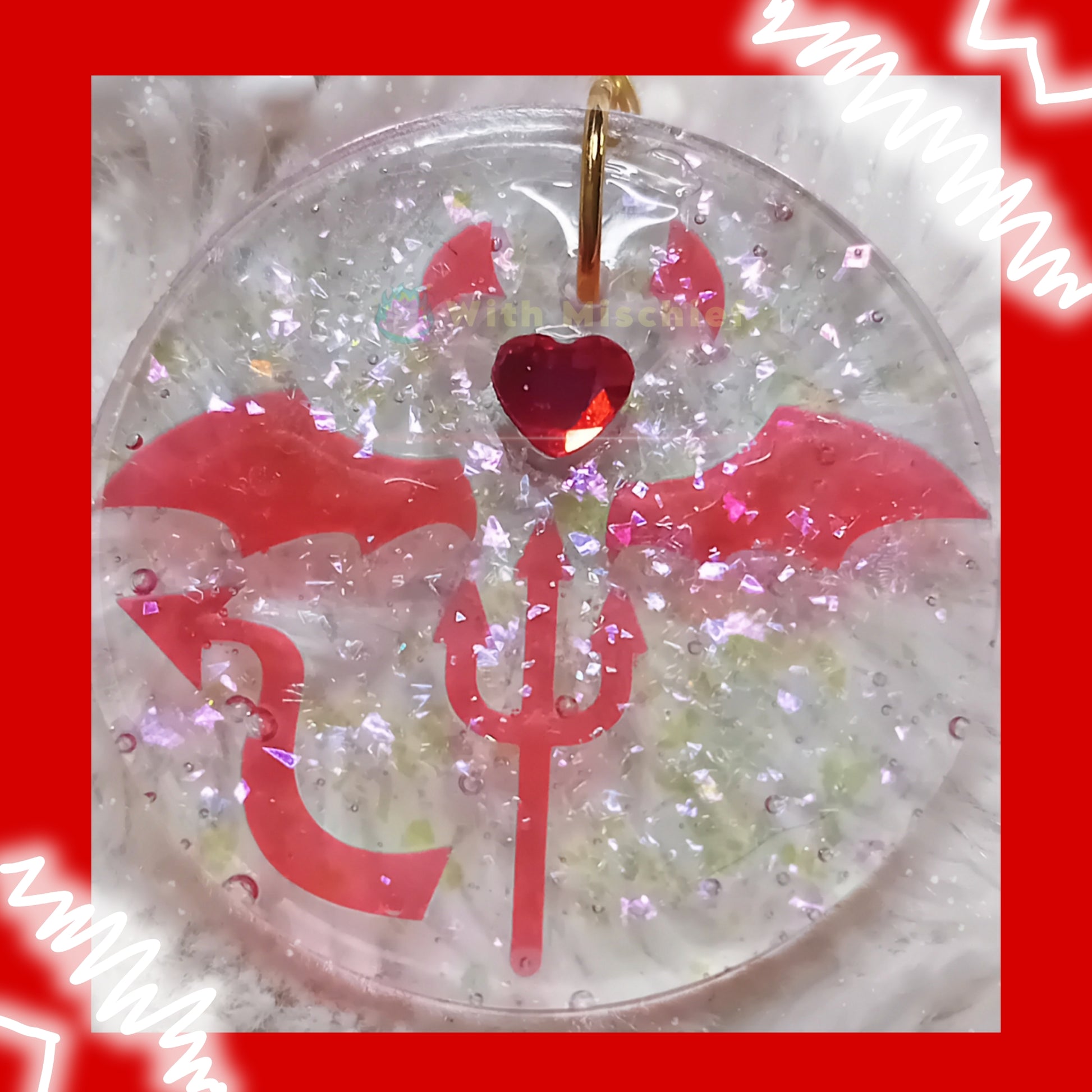 "Älä anna tämän Paholaisen Avaimenperän aavemaisen ulkokuoren hämätä. Se saattaa olla pieni, mutta siinä on persoonallisuutta. Hartsiavaimenperä on koristeltu kimalluksella ja hurmaavalla paholaisen haamulla, mikä tekee siitä sekä aavemaisen että ihastuttavan. Täydellinen leikkisän puolesi esittelyyn."