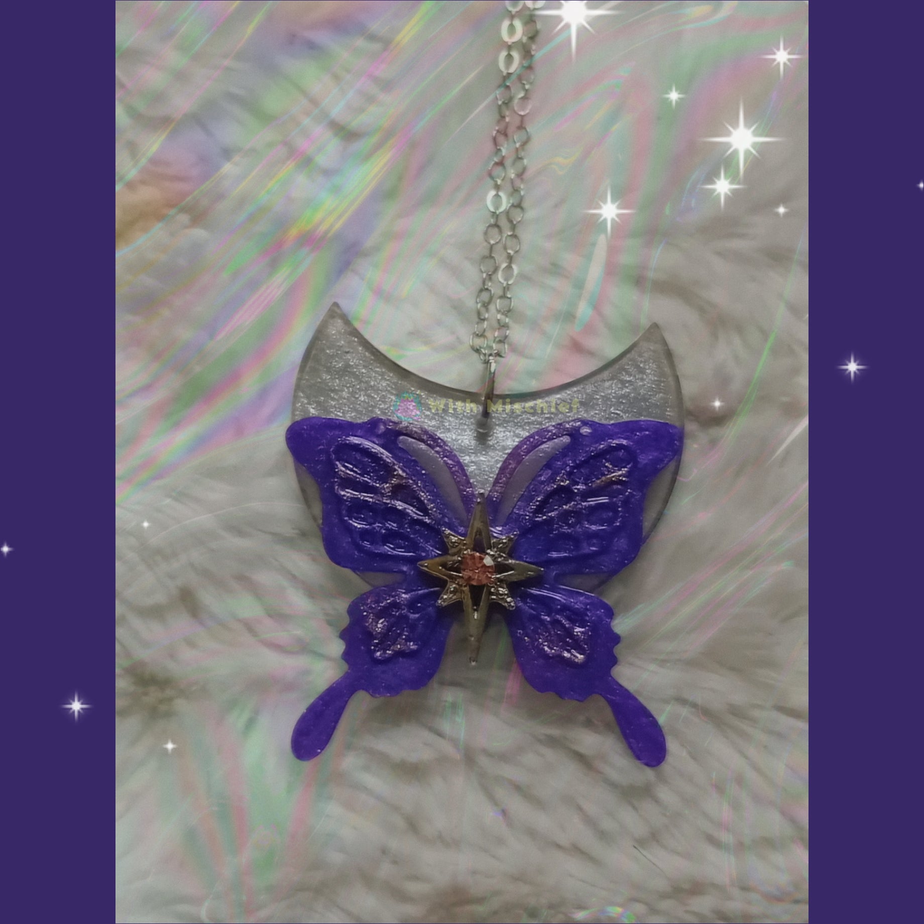 Add a touch of magic to your everyday look with our handmade Butterfly Moon Necklace. This delicate and beautiful piece features a fantasy-inspired, UV resin butterfly and moon pendant on a thin chain. Embrace your inner fairy and spread your wings with this enchanting accessory!