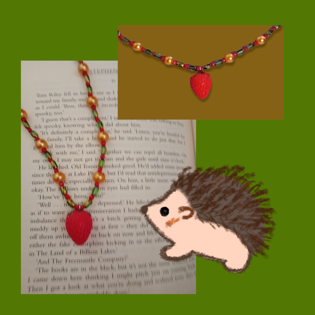 Complete your outfit with our Golden Pearl Strawberry Necklace. This handmade bracelet features green and gold beaded accents, perfectly complemented by a charming strawberry charm. Add a touch of sweetness to your look with this unique piece.